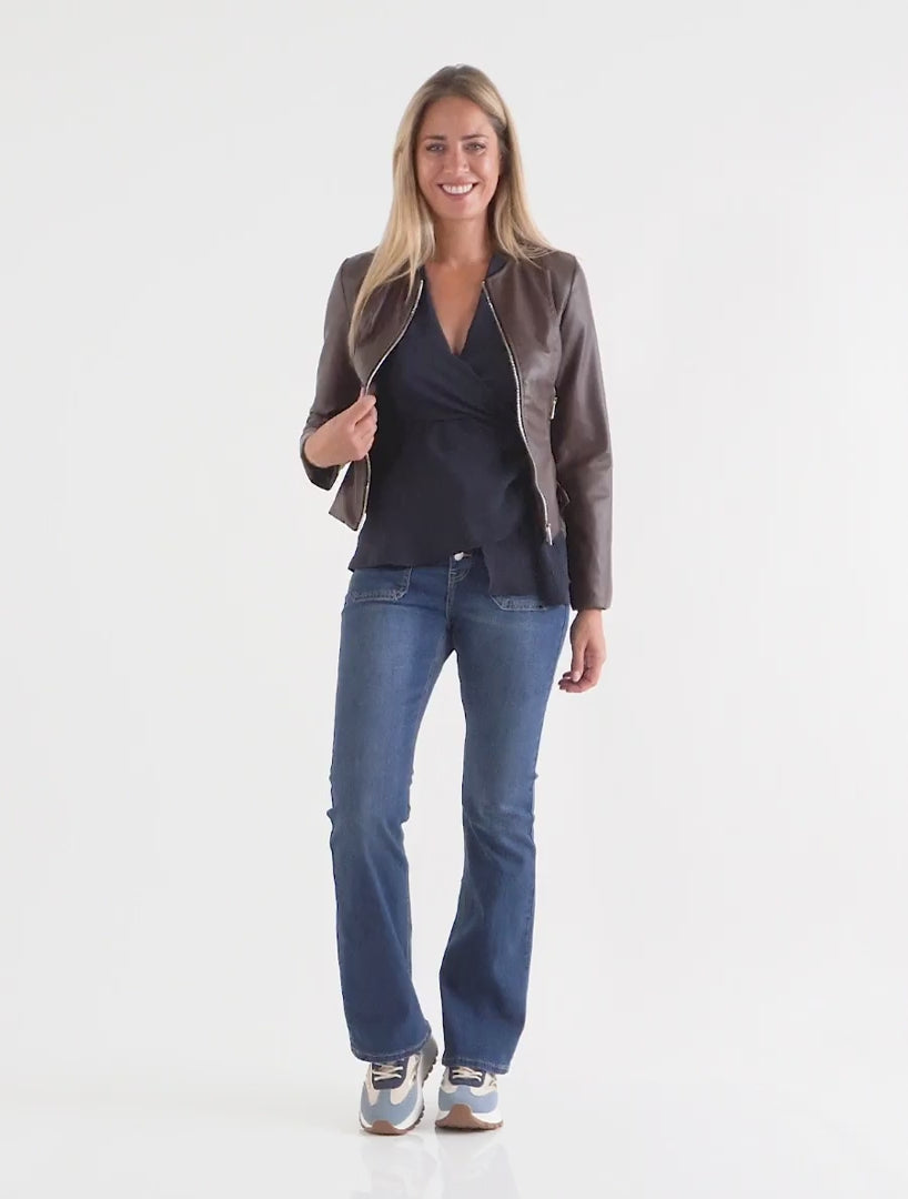 Veste moulante en simili - Marron
