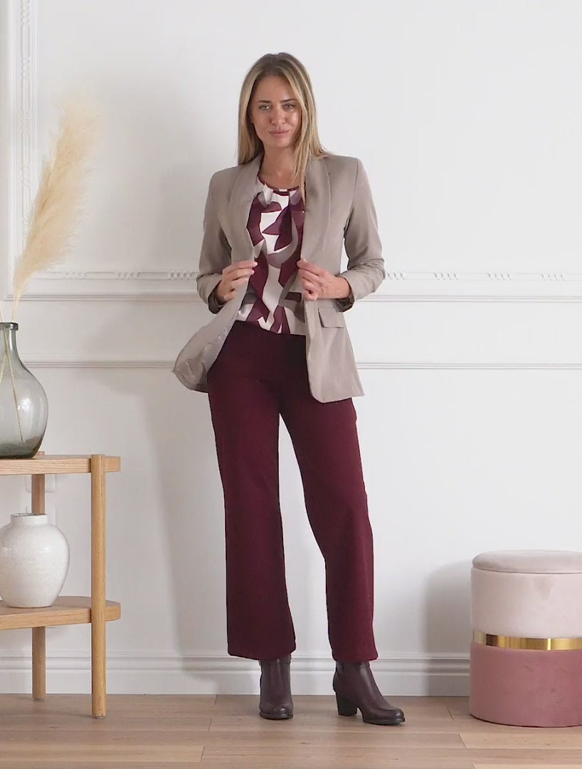 Pantalon à pont droit imprimé chevron - Bordeaux