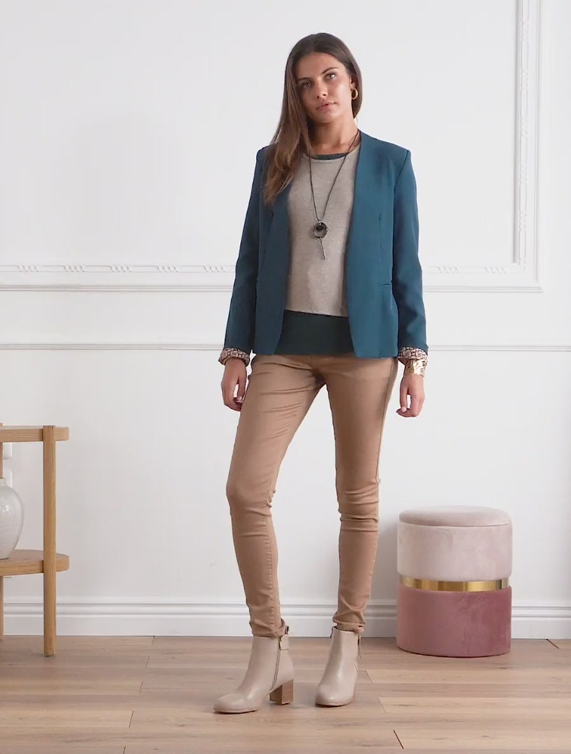 Blazer uni à revers imprimé alphabet - Bleu canard