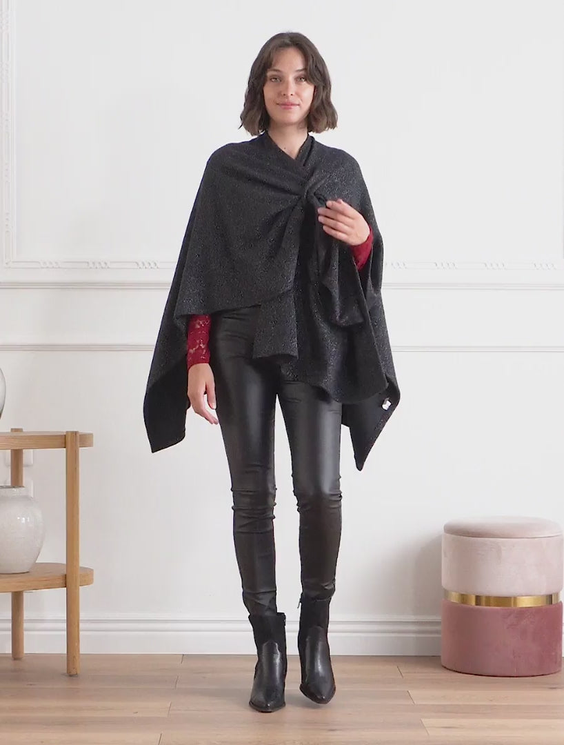 Poncho uni irisé à nouer - Noir