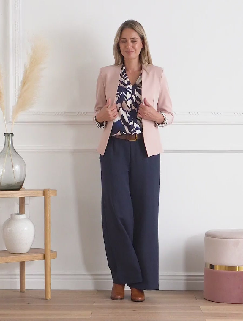 Top droit à col V imprimé abstrait - Marine